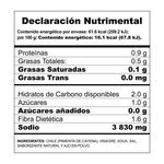| Ingredientes | Chile (pimienta de cayena), vinagre, agua, sal, saborizante natural y ajo en polvo |
