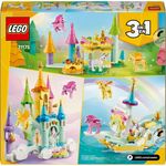 ¡Interpreta aventuras en un mágico mundo de fantasía con el set de juguetes LEGO® Creator 3en1 Castillo de los Unicornios (31175)! Este castillo de 4 torres y 2 torretas tiene una casita para pájaros con 1 pájaro, una escalera arcoíris, una fuente, una habitación con un diamante, un telescopio y una zanahoria dorada.Este juego LEGO ofrece a los niños y las niñas 3 opciones diferentes para construir con los mismos bricks: un castillo, un barco de los unicornios con una vela arcoíris o un parque de juegos con una cabaña del bosque, un jardín y una mesa de picnic.