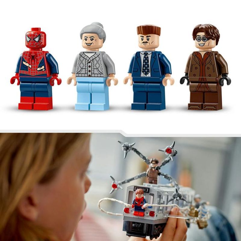 El set de construcción Spider-Man vs. Doc Ock: Escena del Tren Subterráneo (76321) encantará a los pequeños apasionados de las aventuras de acción y los juguetes LEGO® | Marvel de batallas de superhéroes. Este modelo, con infinitas posibilidades de juego que puedes exhibir de muchas formas distintas, es un fantástico regalo para niños y niñas a partir de 9 años.El set se basa en una icónica escena de la película de Marvel Studios Spider-Man 2. Incluye 4 minifiguras: J. Jonah Jameson, tía May, Spider-Man y Doc Ock.